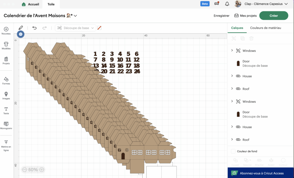 Pour débuter, rendez vous sur le projet disponible sur mon profil Cricut Design Space : Clap Atelier et suivez les étapes suivantes :